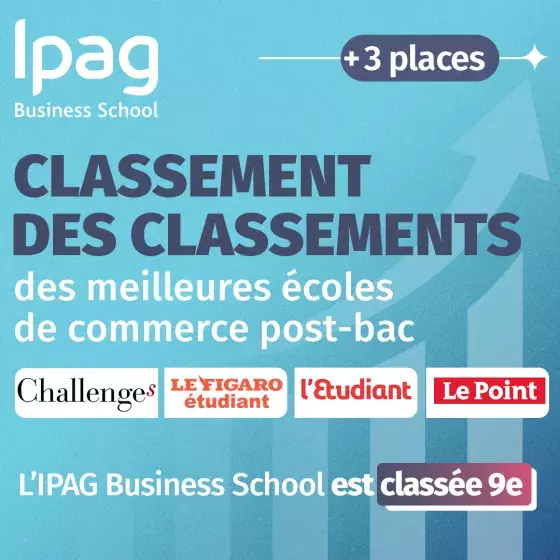 L'IPAG Business School est fière d’annoncer une nouvelle performance marquante dans le Classement des Classements réalisé par HEADway Advisory, qui intègre les données des principaux classements nationaux, Challenges, Le Figaro étudiant, L’Étudiant et Le Point.